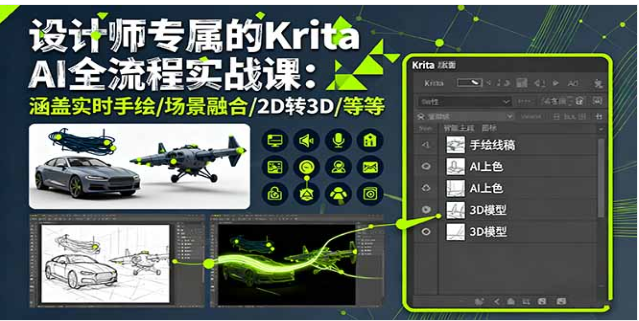 设计师 Krita AI 全流程课:实时手绘 / 2D 转 3D / 场景融合实战