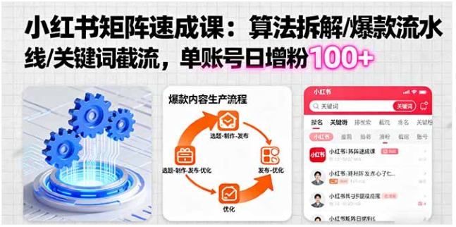 小红书矩阵起号速成课:算法拆解 + 爆款流水线 日增粉 100+